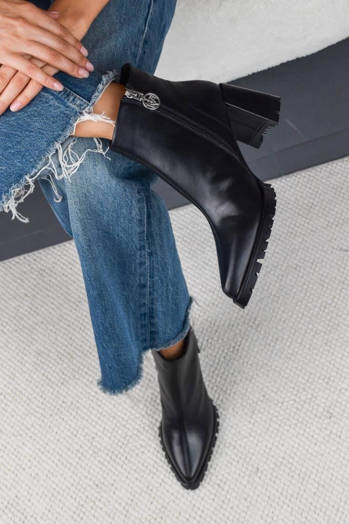 Luci Siyah Deri Kadın Platform Detaylı Topuklu Bot
